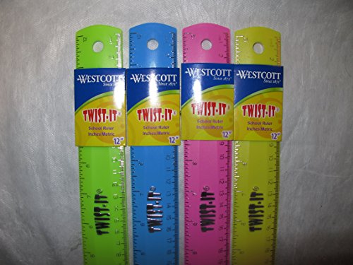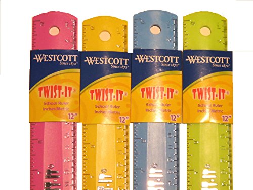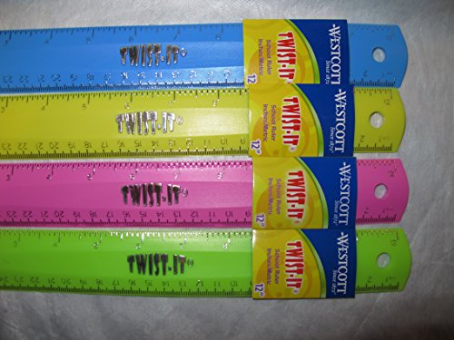 12-Inch 30cm Rubber Soft Shatterproof Flexible Ruler 4 pack Yellow Green Pink Blue School Children Rulers
