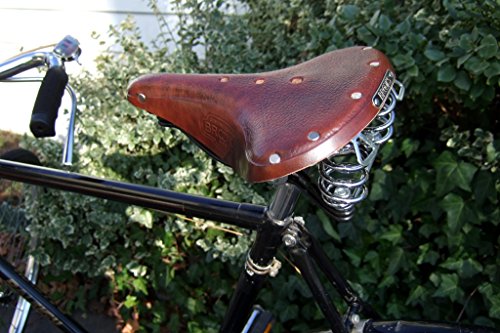 Product Description The B 66 Universal saddles are designed for long distance touring and cruising. The B 66 Universal is a flat and wide saddle that offers many comfortable riding positions. A premium leather cover with a pebbled grain finish, is stretched over a black, cro-moly frame and will provide you with years of riding pleasure. Both B 66 Universal models have dual, chromed rear springs to provide a smooth ride over the roughest terrain. Three centered vent holes, weighs 1,009 grams, is 260 mm in length and 210 mm wide at its widest point. All B 66 Universal saddles use heat treated, double steel rails and under carriage for maximum durability. B 66 Universal saddles easily install on any standard 7/8 of an inch round seat post as pictured. A double railed clamp comes with each saddle. All B 66 Universal saddles are meticulously handmade by skilled artisans in England. 0
