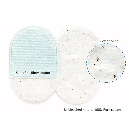 The sky blue cotton is a microfiber pad and the opposite side is 100%natural cotton pad.