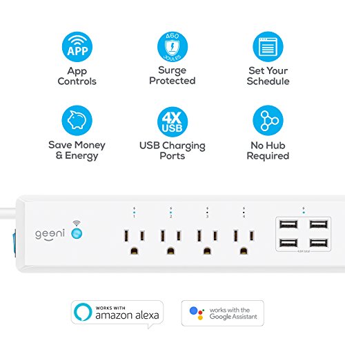 GEENI SURGE SMART WI-FI 4 OUTLET & 4 USB SURGE PROTECTOR - NO HUB REQUIRED, WORKS WITH AMAZON ALEXA AND GOOGLE ASSISTANT