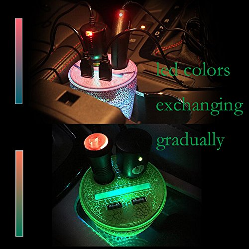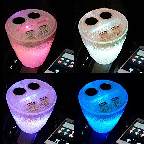 Car Charger for iphone 7 7plus,Seekermaker LED Colorful Glare Gradient Color Cup Type Charger,Double Car Cigar Lighter,Double USB ports.