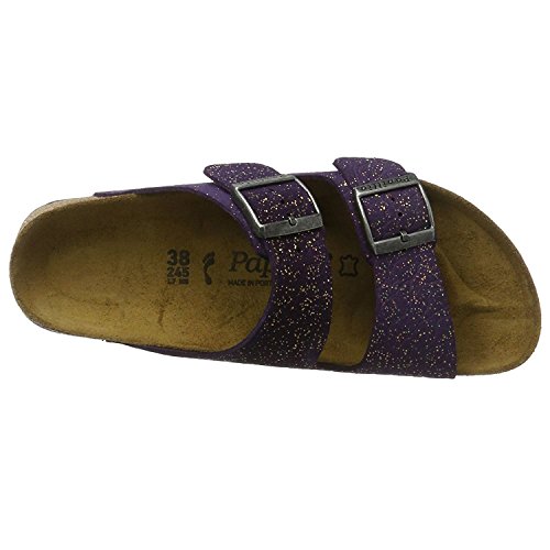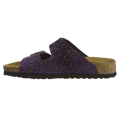 Studio : Papillio Publisher : Papillio Binding : Apparel Product Description If you are looking for a fresh and on-trend summer look the classic and 100% comfortable Arizona slide sandals for women from Papillio by Birkenstock are definitely the way to go. These strappy sandals are made using skin-friendly purple suede upper with a crocodile skin texture with subtle glitter and feature two adjustable straps with buckle closure to easily get that perfect fit.The anatomically correct natural cork suede lined footbed moulds to the shape of your foot creating a custom footbed to cradle and support each and every step you take.The raised toe bar is designed to encourage the natural gripping motion of your feet aiding with circulation. The neutral heel profile and deep heel cup of these open back sandals is distributing your body weight more evenly maintaining a natural posture while walking.These beautiful narrow fit sandals feature a flexible EVA outsole which offers lightweight, shock absorbing support with lasting durability. Narrow fitting and made in Germany. 0