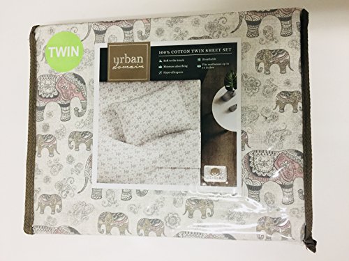 Studio : Urban domain Publisher : Urban domain Product Description This three-piece twin sheet set is 100% cotton, includes one flat sheet which measures 66" x 96", one fitted sheet 39" x 75" and one pillowcase 20" x 30", fits mattresses up to 14 inches, soft to the touch, moisture absorbing, hypo allergic and breathable, made in Pakistan, has the seal of cotton trademark!! Super soft and beautifully designed!! 0