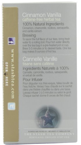 -. Title : Stash Tea Cinnamon Vanilla Herbal Tea, 18 Count Tea Bags in Foil 0.9 oz (Pack of 6)