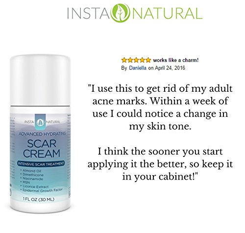 -. Title : InstaNatural Scar Cream - Best Removal Treatment for Old & New Scars - With 15% Sea Kelp Bioferment, Almond Oil, Epidermal Growth Factor, Niacinamide, MSM & Vitamin E - Skin Hydrating Formula - 1 OZ