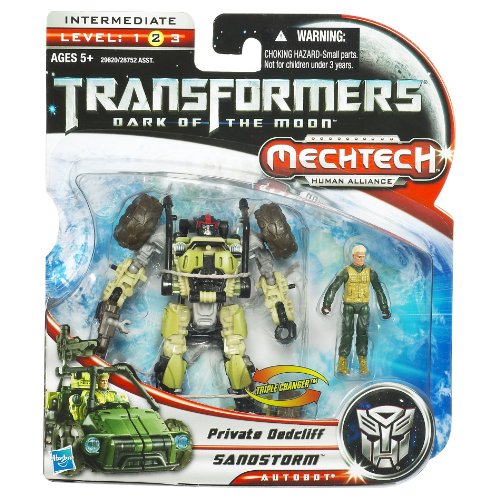 -. Binding : Toy -. Brand : Transformers -. EAN : 0653569589754 -. Feature : Anything earth can throw at him, he can endure and come out smiling. / He requires the same fortitude from his human partner, P.R.Ivate Dedcliff, a Special Forces wilderness survival expert with years of experience. / Together, they hunt Decepticons in the most remote places on the planet. / Robot action figure teams up with human ally to share skills for an unstoppable advance. / Set includes vehicle figure and human ally figure. -. IsAdultProduct : 0 -. Label : Hasbro -. LegalDisclaimer : Not suitable for children under 3 years of age because of small parts- choking hazard -. Manufacturer : Hasbro -. Model : 29620 -. MPN : 29620 -. PackageQuantity : 1 -. PartNumber : 29620 -. ProductGroup : Toy -. ProductTypeName : TOYS_AND_GAMES -. Publisher : Hasbro -. ReleaseDate : 2011-05-16 -. SKU : 2B833649 -. Studio : Hasbro -. Title : Transformers: Dark of the Moon - MechTech - P.R.Ivate Dedcliff and Sandstorm -. UPC : 653569589754