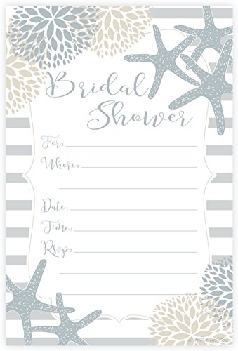 Nautical Bridal Shower Invitations - Fill In Style (20 Count) With Envelopes