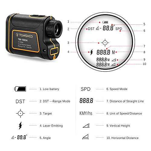Studio : TOMSHOO Publisher : TOMSHOO Binding : Misc. Product Description Do more than you think TOMSHOO new version laser rangefinder range up to 600 meters or 1000 meters to the target, with /- 1 yard accuracy. The finder is multifunctional to measure distance, speed, angle and height.? With fast focus system, makes target measurement easier. Great for golfing, hunting, surveying, mountaineering, sporting events and outdoor adventures.