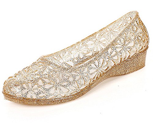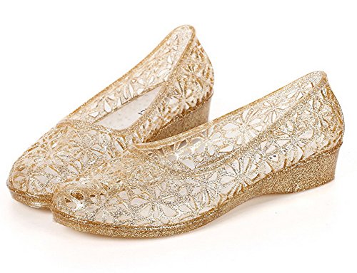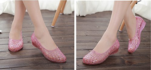 Product DescriptionLow heeled flat jelly shoes for women. 4 Colors available.0