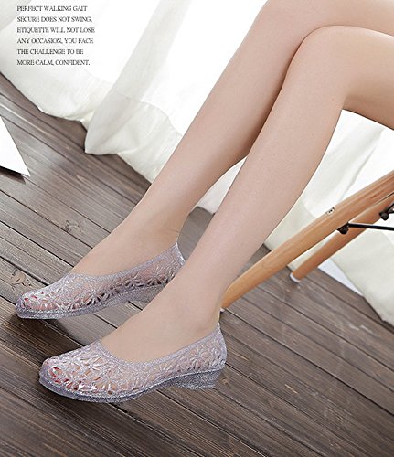 (Vokamara)/Women's/Sandals/DIRECT FROM USA/Women Crystal Clear Plastic Low Heel Jelly Shoes Cut Out Flat