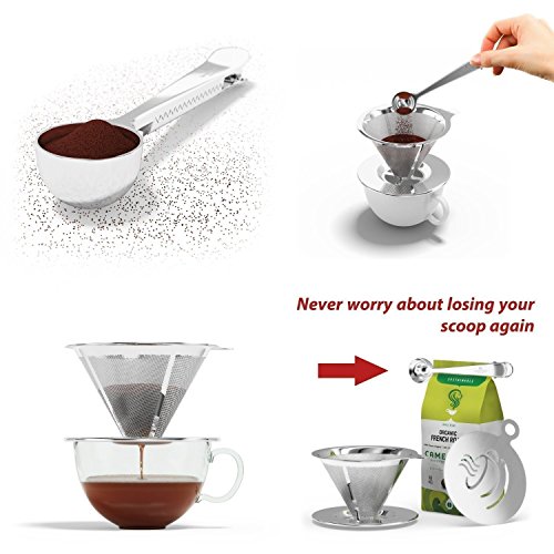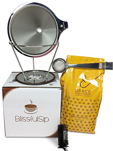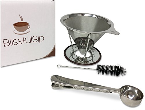-. Brand : Blissful Sip -. Color : Silver ( Stainless Steel ) -. Feature : MAKE COFFEE LIKE THE PROS - If you like your coffee made to perfection, try this lovely compact coffee maker. Made easy to make coffee with nothing but boiling water and your favorite ground coffee. You can use the reusable coffee filter as a single cup coffee dripper or as a pour over coffee filter cone for a single cup or small pot for preparing 2 cups at a time. / THE ULTIMATE FILTER FOR REAL COFFEE LOVERS - Say goodbye to paper filters because you will never have to buy or discard another coffee filter again. Our Permanent stainless steel coffee maker not only eliminates paper waste, but it also guarantees that all of the nutrients and natural flavor oils from your coffee end up in your cup, ensuring a better tasting cup of coffee every day. / PREMIUM QUALITY AND DURABLE - Our coffee dripper is made from high quality 18/8 food grade stainless steel to be extra durable and drip at the perfect rate. / REUSABLE AND EASY TO CLEAN UP IN 60 SECONDS - Are you annoyed of using paper filters? This coffee maker means less mess and is really easy to keep clean, simply rinse well with warm water or throw it into the dishwasher. You can use over and over again. THAT SIMPLE! / 100% SATISFACTION MONEY BACK GUARANTEE - One of the top-talked-about and must-have gadget of the 21st century - We are so confident in the quality of our products that they are guaranteed for life against any breakages or manufacturing defects, if it ever breaks just send it back for a replacement or full refund, you are fully covered for life! -. Label : Blissful Sip -. Manufacturer : Blissful Sip -. Model : Coffee Filter 2 Cup -. PackageQuantity : 1 -. ProductGroup : Kitchen -. ProductTypeName : KITCHEN -. Publisher : Blissful Sip -. Studio : Blissful Sip -. Title : Reusable Stainless Steel Coffee Filter - Best Paperless Coffee Dripper with Double Layer Fine Mesh For Decanter & Brewer - Premium Pour Over Cone & Stand - Make Perfect Single Cup Coffee Every Time