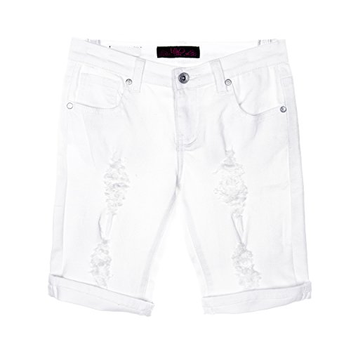 -. Feature : EFFORTLESSLY STYLISH: Whether you are heading to school or having lunch out with friends, these pair of White Bermuda shorts makes a casual yet effortlessly stylish look that'll make you a head-turner as you walk down the street. It features rips, tears, and denim roll cuffs to bring you a feminine yet edgy impression. Pop it up with your favorite top and sandals and you're definitely good to go. / EXCEPTIONAL COMFORT: During a hot summer day, the only thing that's gotta be cool is you and your outfit. Featuring its super soft and breathable fabric, you'll surely enjoy wearing these Lavo Bermuda shorts all day. It offers optimum ease and comfort, allowing you to feel light and carefree as you move. / FIVE-POCKET DESIGN: This pair of denim shorts features a five-pocket design to provide an ample space for your child's essentials. It also features a button and zip fly, leaving a snug, secured fit. / PREMIUM QUALITY CONSTRUCTION: This super soft stretch denim Bermuda shorts is tailored with premium quality materials which are made to last. It is easy to maintain as it can be washed by hand or by a laundry machine. / GREAT VALUE: Whether it be sleek, casual, athletic, or simple, Lavo offers premium quality modern wear at an affordable price. Get fashion and comfort in one as you get your very own Lavo Bermuda shorts today!