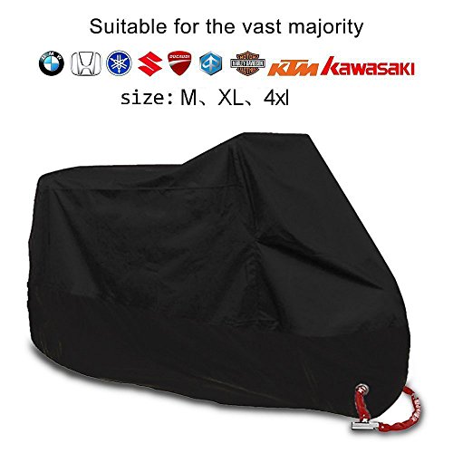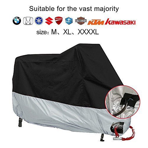 ➡ Universal Size : Designed to fit multiple motorcycle up to 116 inch,3 size for choice ( M: 78.7"x35.4"x39.3")、( XL:90.5"x37.4"x49.2")、( 4XL:116"x43.3"x55").Suitable for all types of motorcycles, our cover also fits on off-road standard-sized bikes and mountain bike、road bike.