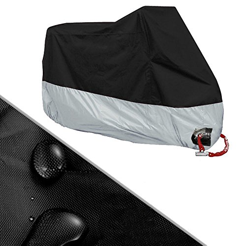 ➡ Aluminum Lock Holes:Two aluminum lock holes,diameter is 3.8 cm, enabling cover to be locked to motorbike via front wheel, for a double security while providing an fully vented protection from all kinds of bad weather.