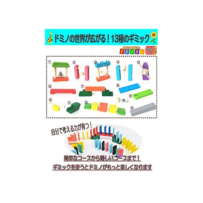 원본상품명:はじめての ドミノ たおし 120個+ ギミック 13種セット 【 積み木 知育 プレゼント にも最適】