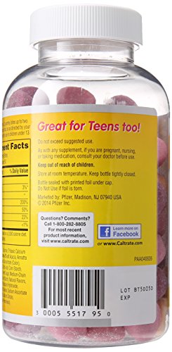 -. Title : Caltrate Gummy Bites Calcium & Vitamin D3 Supplement (Black Cherry, Orange, & Strawberry Flavor, 100-Count Gummies)