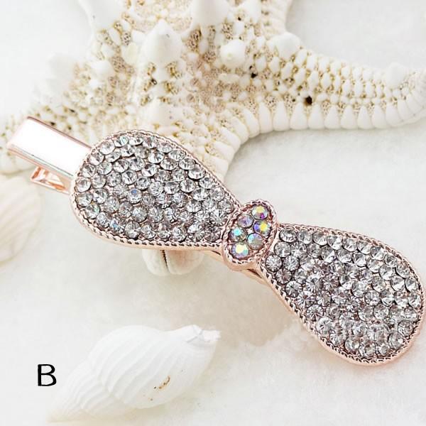 ヘアアクセサリー キラキラ ラインストーン リボン クリップ 髪留め ピンクゴールド 1個 accessory 返品不可