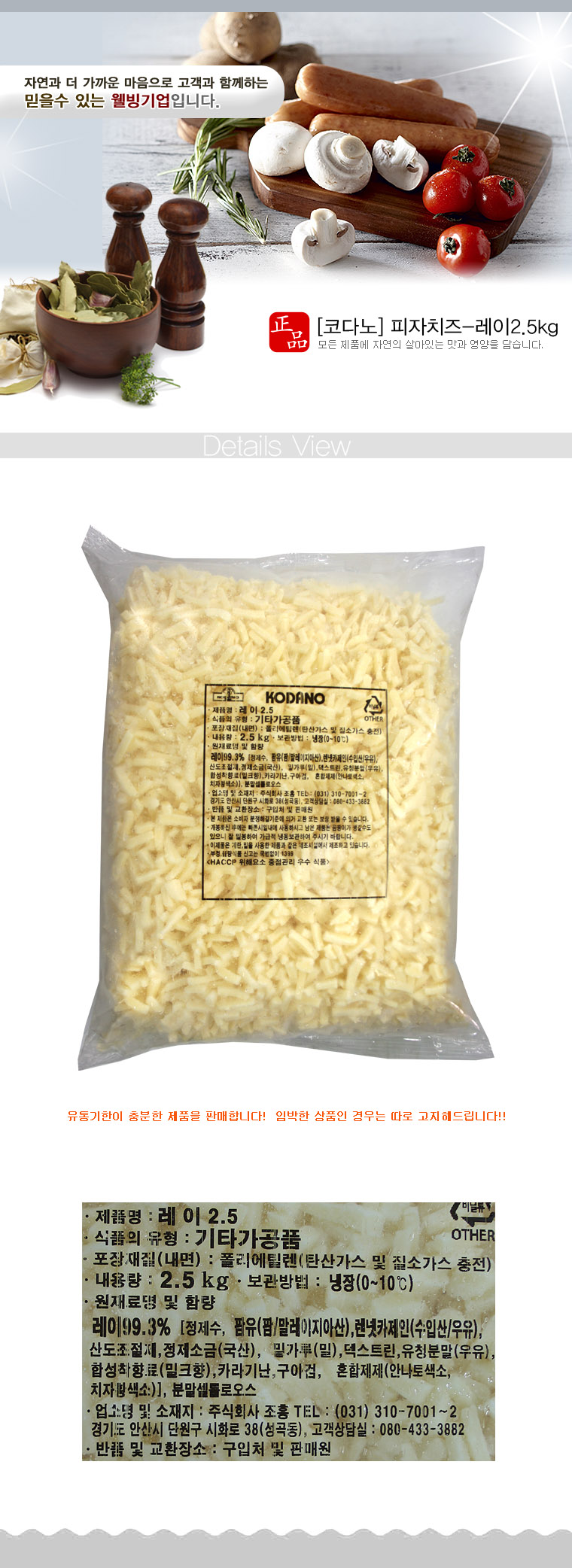 (Refrigerated) Koda no-cheese pizza Ray 2.5kg