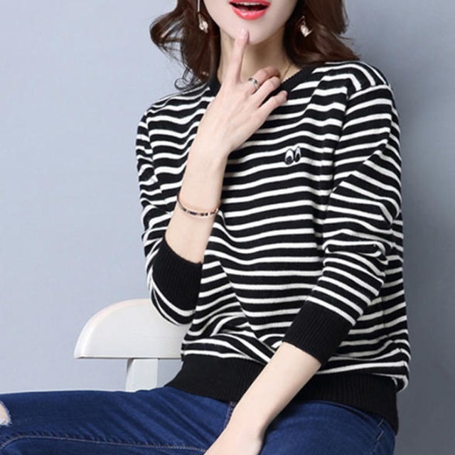 ワンポイントが可愛いボーダーセーター♪