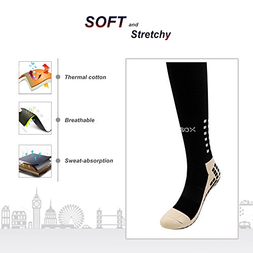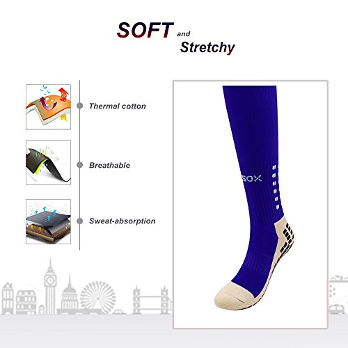 -. Binding : Apparel -. Brand : Global Vasion -. Department : mens -. Feature : Breathable and stretchy knit,dri-fit,accelerates evaporation / High Quality made,non-skid treads,prevent your feet from blisters. / Great for soccer, rugby, football,baseball,softball,cycling,running or home & hospital use / Over the knee length / Size M, -. ProductGroup : Apparel -. ProductTypeName : SOCKSHOSIERY -. Size : One Size -. Title : Athletic Over the Calf Soccer Socks Non Slip