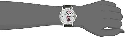 -. Binding : Watch -. Brand : Disney -. Department : womens -. Feature : Polished watch with ribbed toP.R.Ing and round dial featuring Minnie Mouse with articulating arms as hour and minute hands / 38 mm metal case with mineral dial window / Quartz movement with analog display / Faux-leather band with buckle closure / Water resistant to 30 m (99 ft): In general, withstands splashes or brief immersion in water, but not suitable for swimming -. Label : Disney -. Manufacturer : Disney -. Model : W001875-Parent -. ProductGroup : Watch -. ProductTypeName : WATCH -. Publisher : Disney -. Studio : Disney -. Title : Disney Women's Minnie Mouse Arm Hand Watch