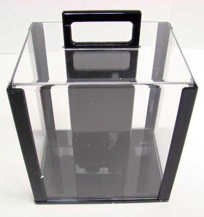 This carrier is constructed of durable acrylic. The corners have been reinforced and this case will hold (10)100 ct. chip trays . The top easily opens, and a comfortable handle makes it easy to carry and move around.