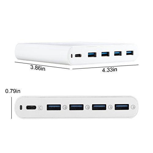 -. Feature : 5-Port USB charging station - 1 USB-C + 4 QC3.0 ports - USB-C delivery power for Apple MacBook Pro 13 inch 12 inch 15inch, HP specter, elite X2, Dell xps 13 and 4 USB port charging USB smart gadgets / Charge your laptop and phones quickly - charge your USB-C laptops or UltraBook fast. It has 1 Type-C pd technology port and 4 ports of quick charge 3.0 / Slim and portable design - the slim and portable design perfectly matches the touch screen mini laptop and UltraBook. Easy to carry for business, travel and holiday / Safety microchip guarantee - this charger isn't just fast, it's also safe. It contains an intelligent safety microchip to make sure the charger never overheats, overloads, or short circuits. / 2 years warranty and satisfied customer service. Always have reasons to own this charger if you have several phones or USB-C laptops