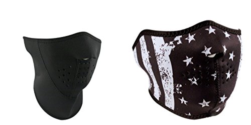 -. Feature : This Product is a 'Bundle' of 2 Neoprene Face Masks identified as a 'Solid Black' and a 'Black & White Vintage U.S. Flag Face Mask' / The First Facemask is the ZanHeadgear 'Solid Black', 3-Panel, Half Face Neoprene Face Mask / The Second Facemask is the ZanHeadgear 'Black & White Vintage U.S. Flag Face Mask' Half Face Neoprene Face Mask / These Face Masks / Ski Mask are made of Durable, Naturally Warm & Water Resistant Neoprene Face Mask Material / The Mask Sizes are adjustable, by up to 2 inches, using the Hook & Loop closure, located at the back of the head