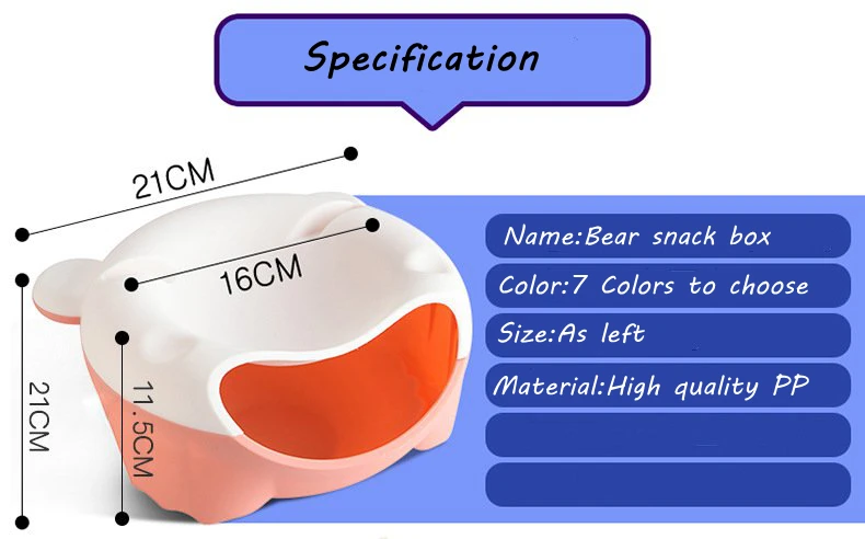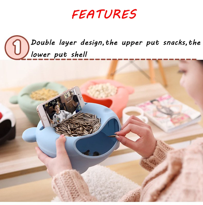1.Double layer design,the upper put snacks,the lower put shell