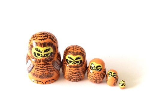-. Title : OWL MINI nesting dolls Russian Hand Carved Hand Painted 5 piece matryoshka Set