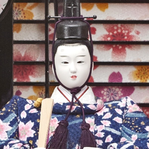 ・台座・屏風等には落ち着いた色目の雛人形セット。