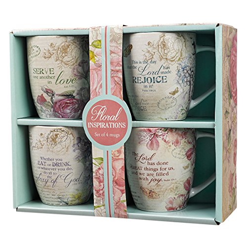 -. Brand : Christian Art Gifts -. Color : Multi -. EAN : 6006937132627 -. Feature : Boxed Set of 4 Mugs / 10 Oz. Capacity / 3 7/8 Inch Tall / Ceramic / Lead & Cadmium-Free Glaze / Microwave & Dishwasher Safe / Gift-Boxed / Manufactured in China -. Label : Christian Art Gifts -. Manufacturer : Christian Art Gifts -. MPN : MUGS07 -. PackageQuantity : 1 -. PartNumber : MUGS07 -. ProductGroup : Kitchen -. ProductTypeName : KITCHEN -. Publisher : Christian Art Gifts -. Size : 10 ounce -. Studio : Christian Art Gifts -. Title : Floral Inspirations Collection Inspirational Mugs - Set / 4