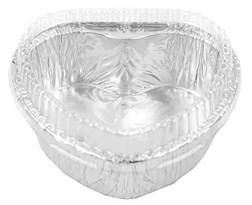 Disposable Foil Heart Shape Ramekins Cups 3-5/8" For Baking Muffin Cupcake Cups With Lids 20 Sets