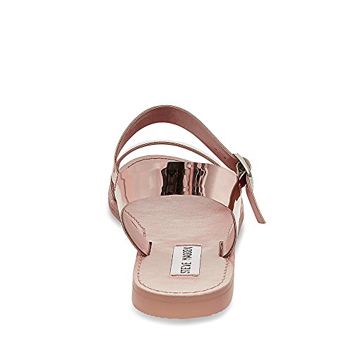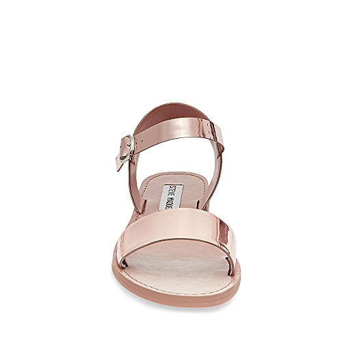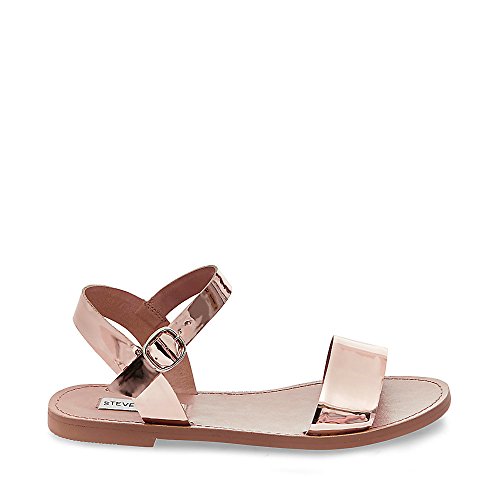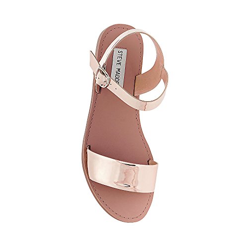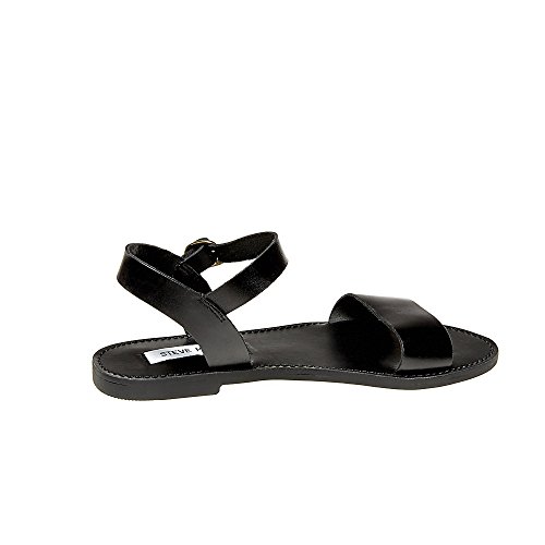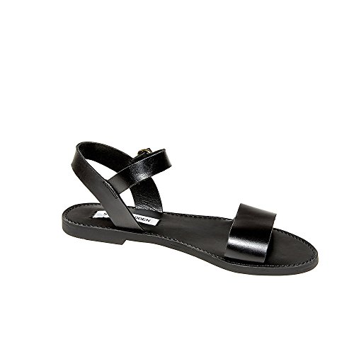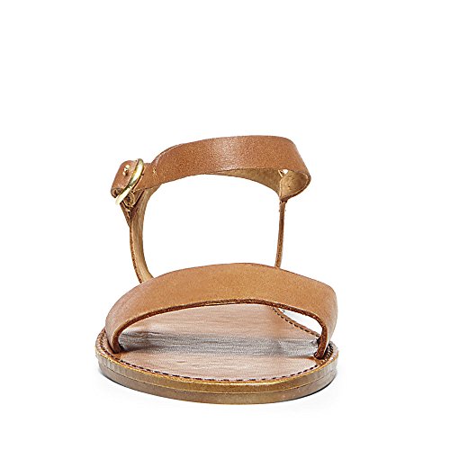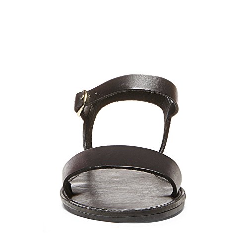 Two-piece flat sandal with wide toe strap and buckled closure at ankle