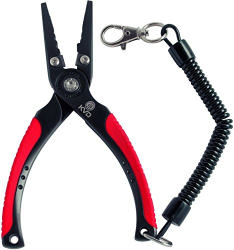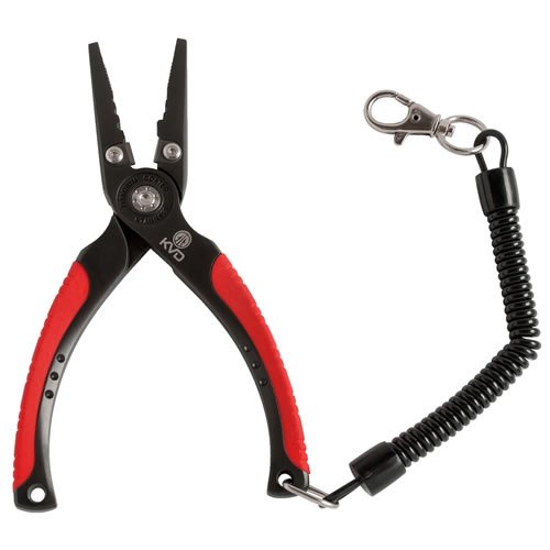 Studio : Mustad Publisher : Mustad Binding : Misc. Product Description KVD Ultra Strong Stainless Steel Pliers are built to last. This tool has been crafted using top quality stainless steel which is coated with Titanium for even greater corrosion resistance. This makes for a tool that is both durable and dependable. Replaceable tungsten carbide cutters, multi function jaws and ergonomic rubberized non slip grips make these pliers a must have for any situation. The handy coiled tether and clasp mean they will always be where you need them when the going gets tough.