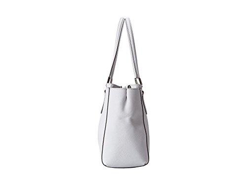 -. Feature : Saffiano leather Inside zip, cell phone and multifunction pockets, fabric lining Zip-top closure Handles with 5 1/2" drop, Longer strap for shoulder wear 12 " (L) x 8 1/2" (H) x 5" (W)