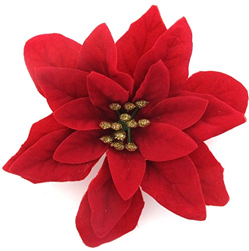 Product DescriptionLarge 5" Deep Red Poinsettia Velvety Poly Silk Flower Hair Clip0
