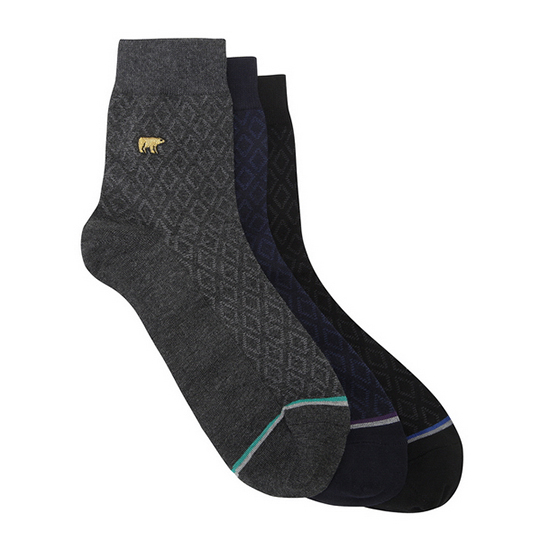 - 톤온톤 다이아 패턴의 남성 3족 SET 양말.