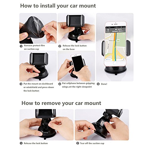Easy to Install -Easy to use mounting system can attach your phone mount to either your dashboard or windshield quickly. To adjust the position of the mount, simply lift the lever at the base of the mount and adjust the position before reattaching it.