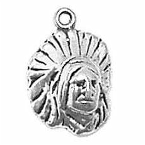 -. Title : Sterling Silver Men's 1.5mm Box Chain Partially 3D American Indian Chief Face Headdress Pendant Necklace