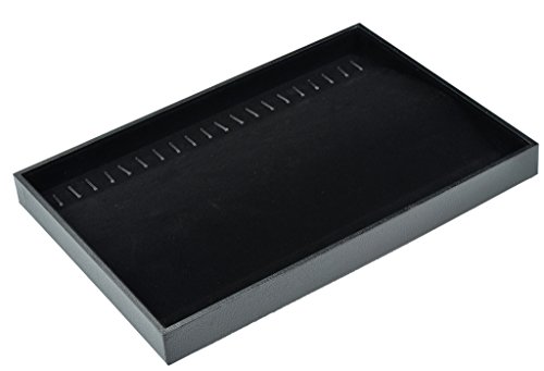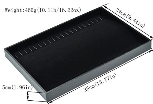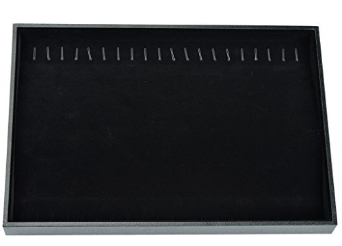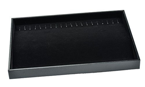 QISE BLACK VELVET 20 HOOK NECKLACE JEWELRY TRAY LEATHER DISPLAY ORGANIZER