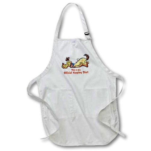 3dRose apr_22859_2 Happy Dog with Official Napping Shirt Medium Length Apron with Pouch Pockets, 22 by 24-Inch