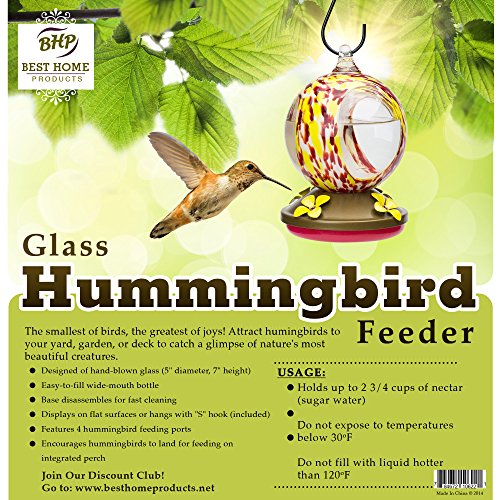 - Title : Hummingbird Feeder --- Hand-Blown Glass Hummingbird Feeders | PREMIUM, DECORATIVE, UNIQUE | Nectar Globe with Red and Yellow | 24 ounces of Nectar | Bird, Birds, Rave Reviews | Nature's Pet | Best Hummingbird Feeder Glass | Hummingbirds Feeders (by Best Home Products)