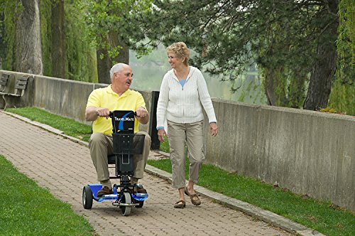 Amigo TravelMate:The most compact model in the Amigo line, the TravelMate mobility scooter is designed for those who are mobile but have trouble walking long distances. The lightweight and foldable construction features a bumper/lifting handle for convenient portability. The TravelMate easily folds down to fit in a trunk or compartment and is great for long or short trips and sightseeing. Simply remove the basket and battery pack, slide the seat forward, fold the handle down, and you're on your way!