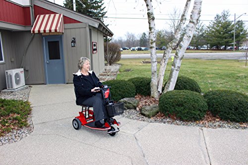 EASY TO NAVIGATE: Designed with front drive and smooth acceleration, this travel scooter is functional on hard indoor and outdoor paved surfaces. Forward and reverse applications and a turning radius of only 31 inches allow for convenient mobility in any setting.