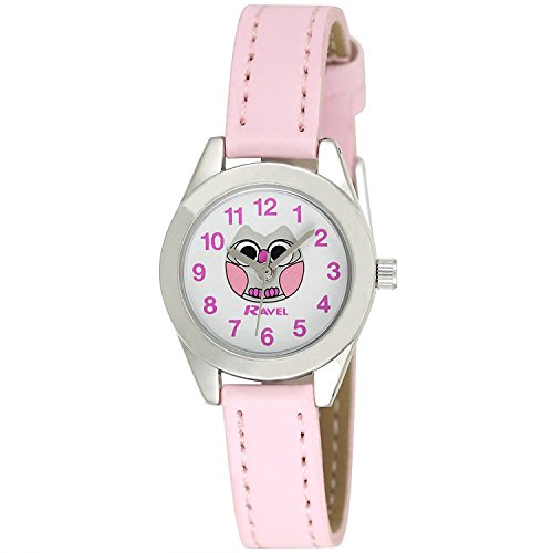 Ravel Little Gems Olly Owl Children's Quartz Watch with White Dial Analogue Display and Pink Plastic Strap R2225