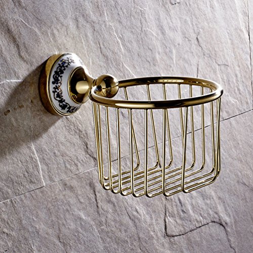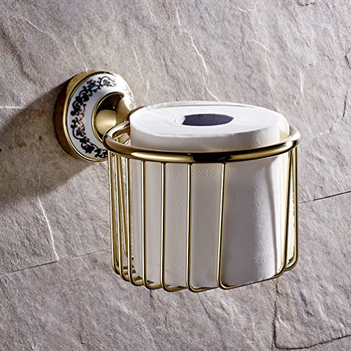 Wall Mounted Toilet Paper Holder Polished Brass Finish Shower Wire Basket