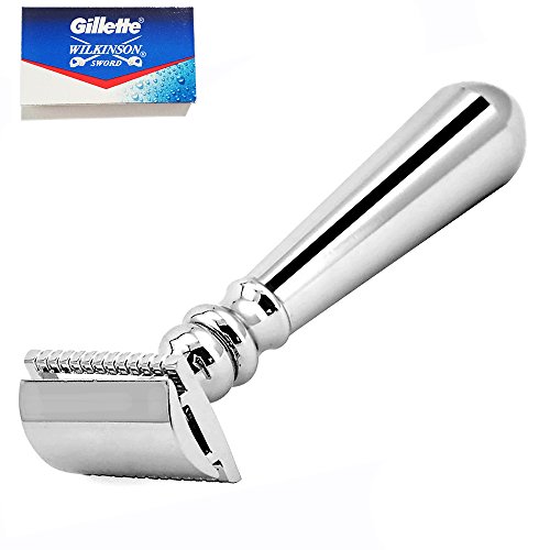 Turaboo Safety Razors,Single Blade Razor,Long Handle Open Duoble Edge Safety Razor and 5 Gillette Blades