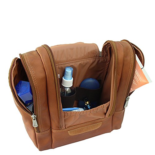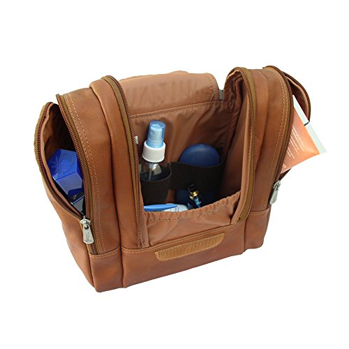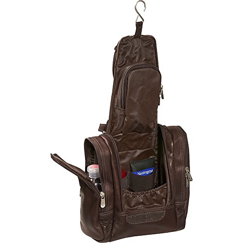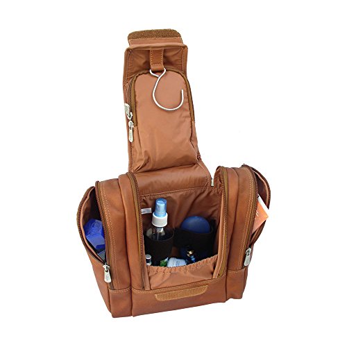 Studio : Piel Leather Publisher : Piel Leather Binding : Apparel Product Description Double zip opening with hook 'n loop closure reveals main compartment with water resistant lining, metal hanging hook, inside zip-pocket, and elastic straps for organizing toiletries. Two side zip-pockets and top handle for easy carrying. 0