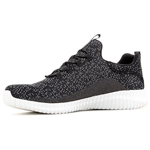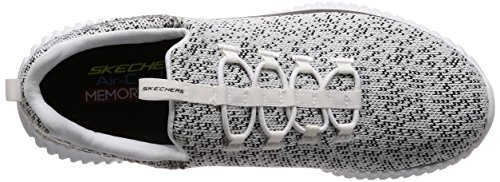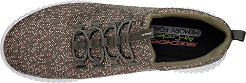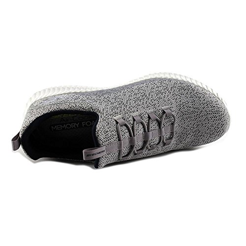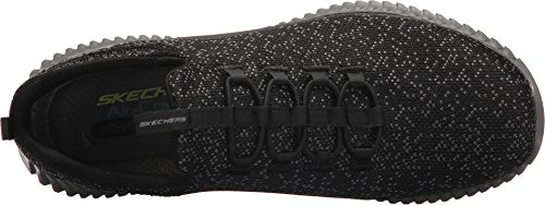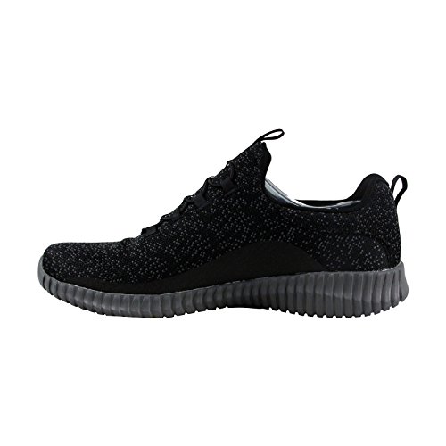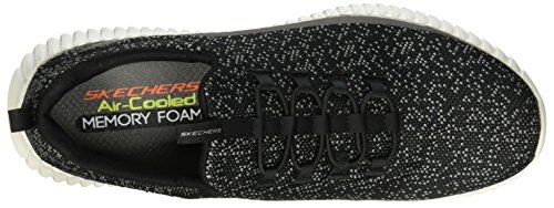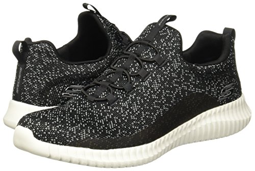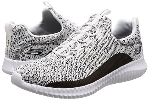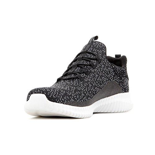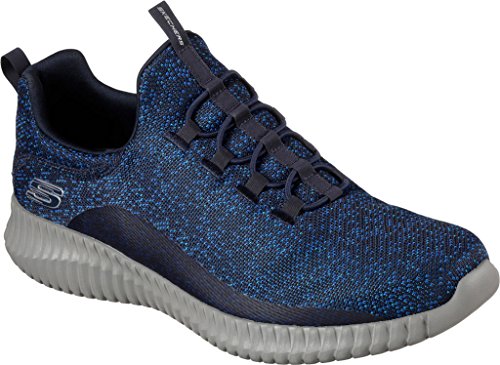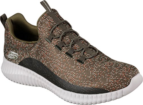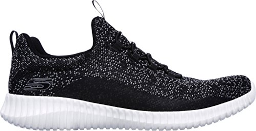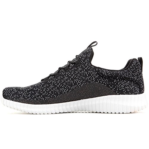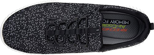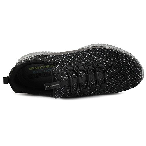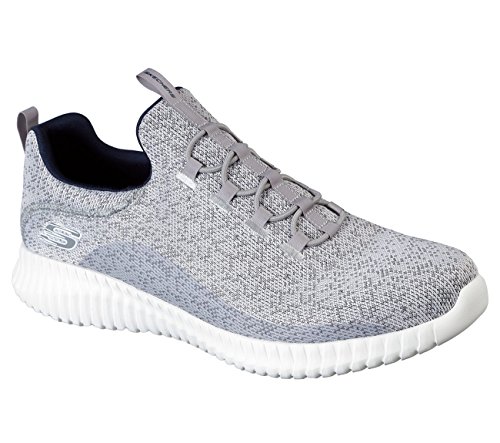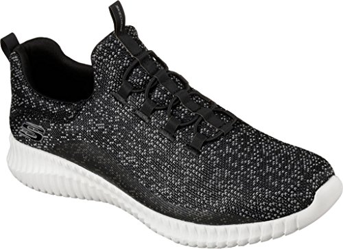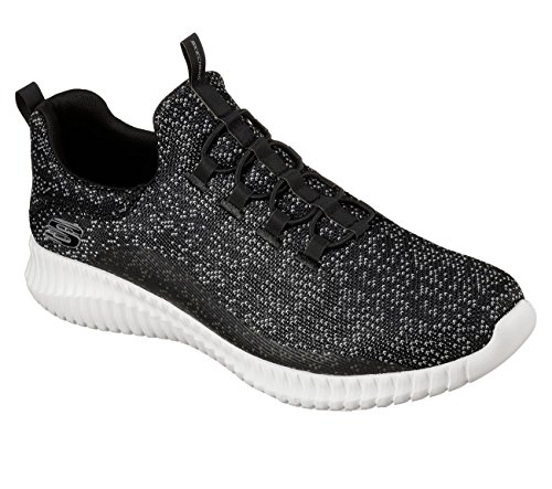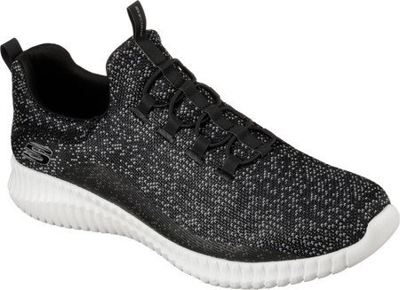 Binding : Apparel Product Description Keep your style perfectly flexible and amazingly comfortable with the SKECHERS Elite Flex - Muzzin Bungee Lace Shoe. Skech Knit Mesh fabric and synthetic upper in a slip on bungee laced sporty comfort walking and training sneaker with interwoven tweed pattern. Air Cooled Memory Foam insole, highly flexible comfort midsole. Smooth synthetic 3D printed side panel overlays for added durability Woven-in sporty tweed-look design with contrast color detail Side stitched seam details; Side S logo; Bungee stretch laced front panel for laced-look and slip on ease High apex front and heel for added comfort; Heel panel overlay with SKECHERS logo and top pull on tab Center fabric stripe with pull on instep tab; Padded collar; Soft fabric shoe lining Air Cooled Memory Foam cushioned comfort insole Elite Flex midsole with superior impact cushioning protection and remarkable energy return; Highly flexible articulated midsole and outsole design for freedom of movement; Textured channel design midsole finish Flexible outsole with flexible articulated traction design. 0